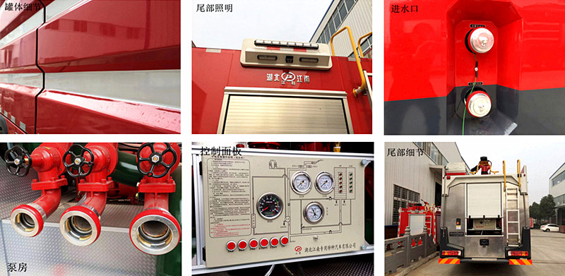 駕駛室頂部前端為長排警燈,車身后配有24V/60W火場照明燈一只,車輛兩側(cè)上方各配有紅藍相配的爆閃燈,下方安裝安全標志燈,乘員室、器材箱、 泵房內(nèi)均裝有照明燈,加裝有100W警報器,回轉(zhuǎn)警燈開關(guān)、通訊設(shè)備預(yù)備接口。