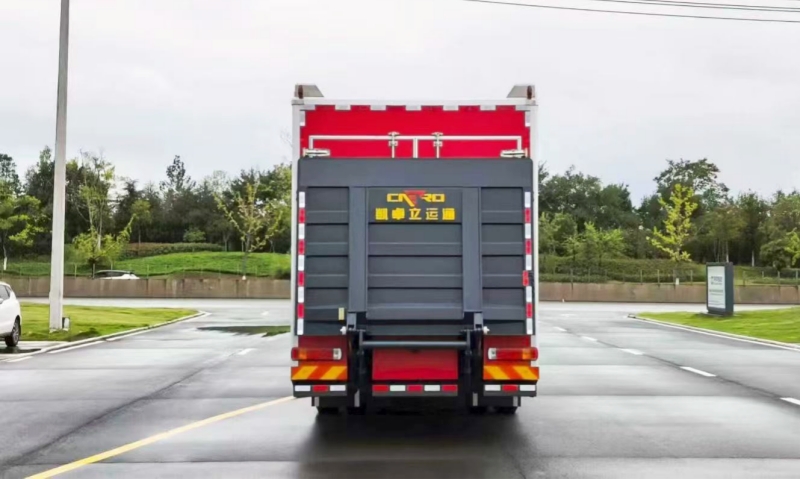 車輛采用標(biāo)準(zhǔn)化拉臂機(jī)構(gòu),支持多類型器材箱體快速裝卸。模塊箱內(nèi)部以編織帶和絞繩器固定裝備,確保運(yùn)輸穩(wěn)固性;箱體容積達(dá)8立方米,可容納22類常規(guī)救援設(shè)備,如消防水帶、破拆工具及生命探測(cè)儀,實(shí)現(xiàn)“一車多能”的靈活部署。