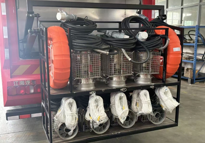 潛水泵配置:配備10臺便攜式潛水泵,單泵流量≥500m3/h,總流量達(dá)5000m3/h。