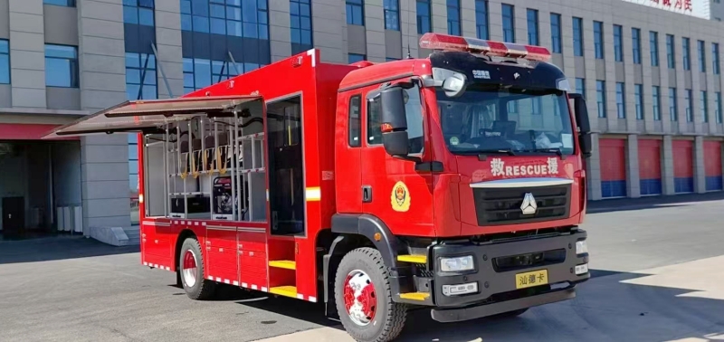 駕駛室為美式消防專用設(shè)計,乘員數(shù)2-3人,集成隨車起重機及自動化救援工具。